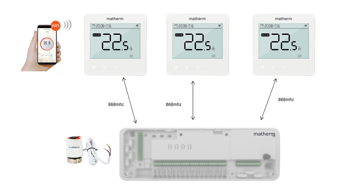 Das Matherm MA-02 8-Zonen-Basisstation bietet eine professionelle und innovative Lösung zur Heizungssteuerung. Dieses drahtlose System ist speziell für die Bedienung von bis zu 8 Raumthermostaten und 16 Stellantrieben konzipiert und überzeugt durch flexible Steuerungsmöglichkeiten, moderne Technik und einfache Installation.