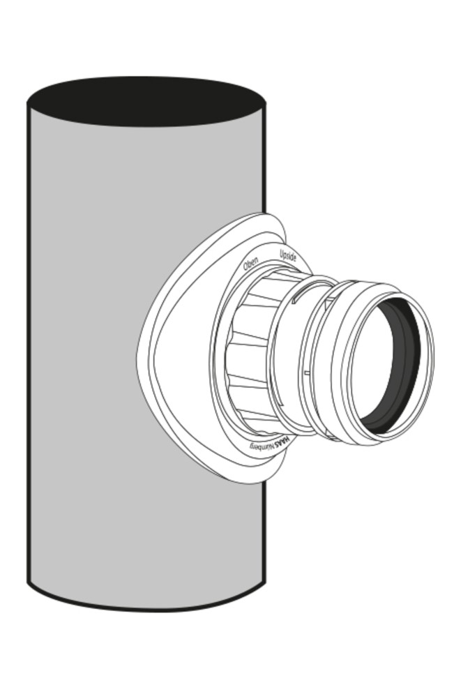 Der Anschluss eignet sich für Hauptrohre DN 110 mit einer Wandstärke von ca.